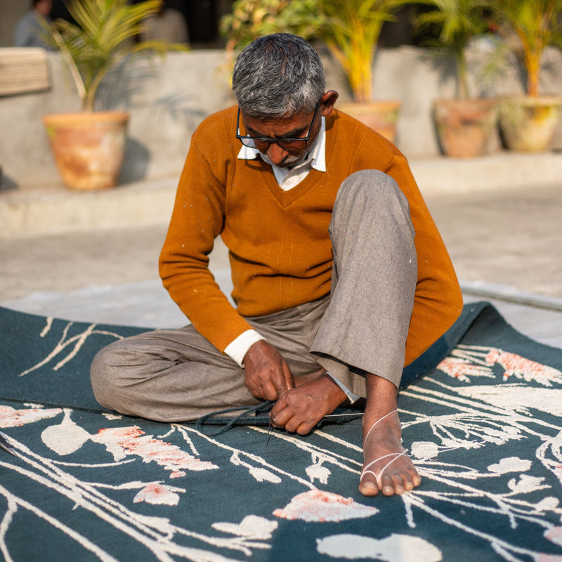 Your rug is hand-knotted over 6-8 months at 200 knots per inch by master artisans in Nepal through Crosby Street Studios.
